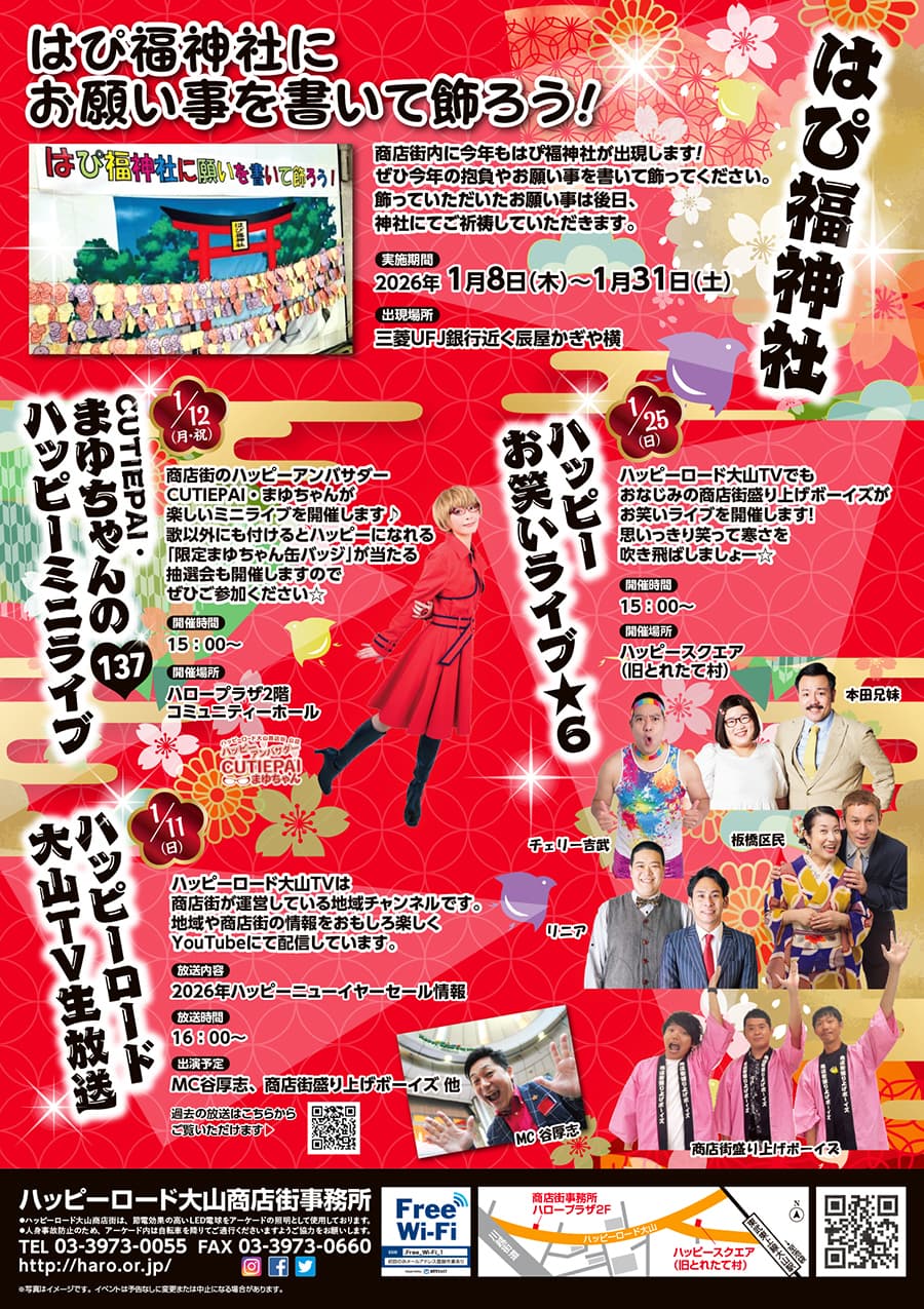 商店街内に今年もはぴ福神社が出現します!ぜひ今年の抱負やお願い事を書いて飾ってください。